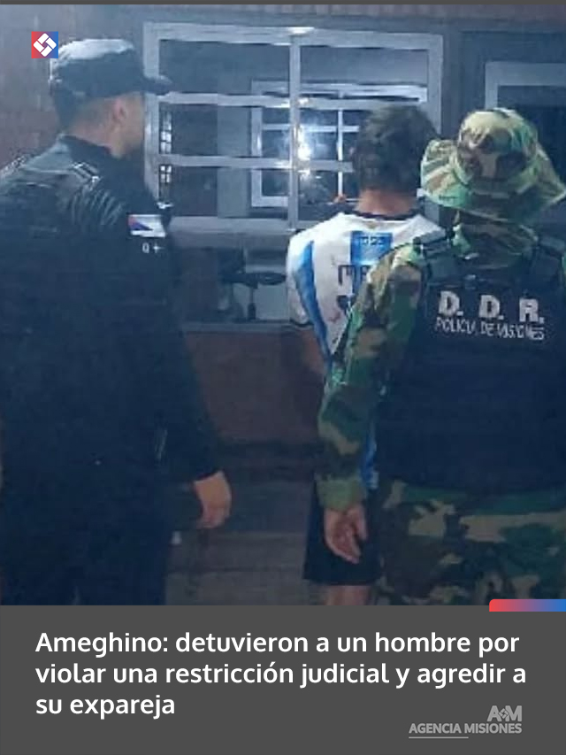 AGENCIA MISIONES.UNO | Un hombre de 34 años fue detenido en el paraje Puerto Rosario, en Florentino Ameghino, tras ser sorprendido agrediendo a su expareja, sobre quien tenía vigente una prohibición de acercamiento.